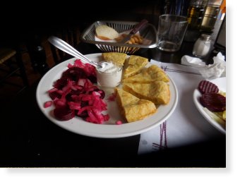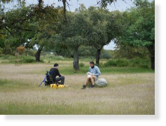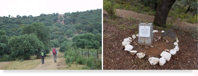 | 銀の道4 Castilblanco - Almaden de la Plata いてて 4月30日 Castilblancoのアルベルゲを7時半に出発する。今日は少し長い行程なので、ほとんどの人たちは出発した後だ。延々と気持ちのいい舗装路を歩き続けると、二人の巡礼が何やら柵越しに見ているので私も覗いて見ると、大きくて灰色の豚がぶーぶー鳴いている。見たこともない色だったので、これが有名なイベリコ豚かとすぐ分かった。もっと希少な存在かと思ってたけど割と簡単に見られるんだな。水を飲むために3分ほど腰を下ろして立ち上がろうとしたらまた激痛が! なんなんだよこれ。いつもの腰痛とは違うのは分かるが、こんなの初めてだ。それでも腰痛の時と同じように足を引きずりながらソロリソロリと歩いていくと5分位で痛みは治まるので腰痛よりマシな気がする。腰痛は歩くことによって背骨から飛び出した神経が上手く納まり痛みが引く感じだが、今度のは歩くことによって骨盤に大腿骨が上手くはまるような感じだ。座って立ち上がるときに痛くなるのが分かったので、これより後は座らないことにする。 足の肉刺が痛くなってきたので、早めにカットバンを貼ることにしたが、座るとまた痛いので立ったまま工夫しながら貼り、さて歩き出そうとしたらまた激痛が。うーむ、座らなくても腰に負担が掛かると痛くなるようだ。足を引きずりながらそろそろと歩き出すと、後ろからやってきたベンがその様子を心配して「メディスンがあるよ」とザックから何か出そうとするが、ボルタレンがあるから大丈夫、少しの間ゆっくり歩くと痛くなくなるんだと伝える。 やがて舗装路は終わり、鉄製の門扉を開けて田舎道へと入っていく。土の道は足に優しい。草原に入った処でベンとスペイン青年は軽食にするようだが、座ることが出来ない私は先に行くよと二人を後に歩き続ける。 沼みたいな所にでると道に面白いものが現れた。これ何だか分かりますか?ほかの巡礼路でも登場したが、これは水が増水したときに人がポンポンと渡る簡易橋です。今日は大した水量じゃないので水の上を歩いても少し靴が濡れるくらいで済むが、雨の時なんかは大いに助かるものと思われる。![]() 今日のラスボス登場。最後の凄い上りが見えてきた。冗談みたいな登り坂で木々の間から先を行く巡礼者がポツポツと見えている。みんなここにやって来る迄にくたばりかけてるので、この急坂でトドメを刺されそうだ。実際、この坂の途中で亡くなった人の墓標があった。カミーノには時々巡礼者の墓標があって、私はそこでは必ず立ち止まって写真を撮ることにしている。見ず知らずのその人にちょっとだけ思いを馳せることが供養になる気がして。 頂上には小さな展望台があって先発した巡礼が集まっている。皆さん急坂を這い上がってほっと一息というところだろう。眼下には今晩の宿があるアルマデンが見えていた。ここも白い町だった。結局、白ペンキが一番安いから(想像です)白にするのかな?何はともあれ28.8kmを1回座っただけで歩ききったので疲れた。町が見えてホッとした。 スペイン語を話す夫婦のあとに付いてアルベルゲ探し。2軒はフルだったが3軒目は希望の公営だったので願ったり叶ったりだ。しかもベッドルームはガラガラ。先に訪ねた2軒が満杯だったので一瞬焦ったが、私営がフルで逆に良かった。私営は公営の倍の料金だから。でも予想に反してここの公営は10ユーロもした。じゃぁ私営は幾らなんだ? この夫婦は旦那がホセでスペイン人、私と同い年。奥さんはジヌでフランス人だった。この夫婦ともこのあと何回も同じアルベルゲになって、とても仲良くなる。 すぐシャワーと洗濯してスーパー探し。途中でアルベルゲを探していたベンに場所を教えてあげる。 店は日曜なのでどこも全滅。仕方ないからバルで定食を食べることにするか。道端で少年がチラシ片手に客引きをしていて、見ると休めの8ユーロなので即決。1皿目にはサラダ。健康のために野菜はなるべく摂るようにしている。2皿目はトルティージャを注文したが、トルティージャをパエージャと勘違いしてしまったので、ご飯が食べられると喜んでいたが出てきたのは焼餅のトルティージャだったのでがっくし。ワインもフルボトルとは行かないまでもデカンタだろうと思っていたらグラスだったので、これもがっくし。8ユーロだからこんなもんなんか。ワイン一杯じゃぁなとビールを追加したので合計10ユーロ。スーパーなら1リットルビールが1ユーロで飲めるけど店飲みだとグラス1杯が2ユーロ・・・。がっくし。 デザートにはリンゴが丸ごと出てきたので、明日の食料が確保できてないからこれは明日用に取っておこう。付け合わせの赤たまねぎが辛すぎたので、アルベルゲの自販機でコーラを飲む。まだ舌先が辛いのでキッチンに備えてあった砂糖をもらってレンジでチンして砂糖湯を3杯飲む。変なことしてるなー。銀の道5へつづく |