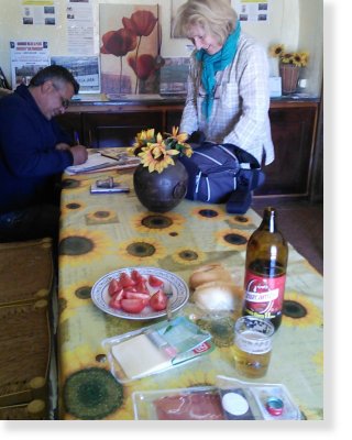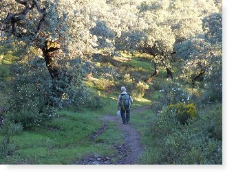 | 銀の道5 Almaden dela Plata - Real de la Jara 最高齢の巡礼者 5月1日 今朝のスタートからほぼ一緒だったフランスのじっちゃんが先を歩いている。話すまではスペイン人かと思った。英語はまったく話せないが、余りに年が行ってそうなので聞いたところ何と82歳だった。私より15歳も年上にびっくりぽん(ふる)。 今日のコースは緩やかな丘陵が続く気持ちのいい道。行く先々で閉じてある門を開けては通って行く。これらは私有地を我々が通らせて貰っているものだから、開けたらキチンと閉じておかないと家畜が逃げてしまうと言うことらしく、掛けてある札にもそんなようなことが書いてある。遠くからワンワンと吼えながら大きな犬がやって来た。味のしないビスケットがあったので、それでもくれるかとバックパックを下ろしていると近くにやって来て尻尾を振っている。これが人のブログで読んだ乞食犬かとピンと来た。ここだったんだな。小さなビスケットを2個、ポイと放ってやると臭いを嗅いでからポリポリと食べ始める。すぐ後からやってきたフランス爺ちゃんもくれるかと思ったようでまとわりついているが、爺ちゃんはお構いなしにさっさと前へ歩いていく。そしたらまた私の所にやってきて後ろ足で立ち上って「くれくれ」とおねだりしているが、「ないない」と言って無視して先へ進む。 牧歌的な田舎道を行くと、今度はイベリコ豚の牧場があった。日本の狭い豚舎じゃなくて、青空の下で自由に歩き回って育っているので、さぞや美味しいハムになってくれるんだろう。ここの豚も昨日見たのと同じ灰色だった。イベリコ豚ってどんぐりだけ食べさせて育てると聞いていたが、大量の配合飼料を一心不乱に食べていた。イベリコ豚とは違うのかな。 次に現れたのはヤギの集団。ここも日本のヤギと模様が違って、いかにも外国のヤギと言う感じだ。そして群れの隣の木を見たら、何と上って葉っぱを食べているのがいた。爺ちゃんに教えてやったら、やっぱり珍しいらしく驚いて写真を撮っている。私も勿論撮ってみたが、これ木の上にいるヤギが分かりますかね?赤い丸の中です。 除々に上りの激しい山道になってきて、爺ちゃんとの差が空いてきて一人歩きになる。今の私は上りより下りの方が要注意だ。段差でズシンと振動があると尻に効くので注意深く下りていく。そこを過ぎれば大したことはなくて、11時11分に目的の村に到着。ここのアルベルゲは村の入り口にあったので探す手間がなかった。私の先を歩いていた巡礼3人は、もっと先まで行くのか、この村で他に当てがあるのか、このアルベルゲには泊まらなかったので今日は私が一番乗りだ。すぐ爺ちゃんとベンも到着してくる。ベンは若いけどショートコースにしたようだ。銀の道は村もアルベルゲも少ないので、どこの村にどんな宿があるかをしっかり把握しておかないと悲しい目にあう。2日間一緒だったスペイン人の青年は若いだけに次の村を目指すと行ってしまったが、村のスーパーに行ったらベンと3人で一緒になる。スペイン人の彼とはこれきり会うことはなかった。 明日も次の宿までは村がないので食料は大目に仕入れとこう。1リットルビール、チーズ、ハム、パン、ロールケーキ、大きなビスケット1袋、トマト3個、スープの元、粉末コーヒー、ナッツと大量買いして11ユーロと少し。早速アルベルゲに戻って1台しかない入り口の大テーブルで飲み食い始める。ここは受付のテーブルも兼ねているので巡礼者が後からやってきて手続きをしているが、気にするほどでもないだろう。 昨日も見かけたソロのオバちゃんがやって来て私の食べてる隣で受付を始めた。ここはベッドルームが3つあって、それぞれ2段ベッドが2台ずつあるこじんまりしたアルベルゲだが、このオバちゃんとは仲良くなれそうな気がするので私の部屋に来ないかなと思ったが別の部屋だった。おばちゃんはフランス人のエディスで、このあと1ヶ月以上の間、一緒になったり離れたりしながら最後はサンチャゴでも再会する縁の深い人だったが、まだこの時点では挨拶する程度。座って立つと痛いのは分かっているが、立ったまま食べる訳にもいかない。テーブルから立ったときにアッとか言いながら偉い格好してるのを見たベンがまた「メディスンがある」と申し出てくれるが、こっちもまたボルタレンがあるからと言ってみる。何とか効いてくれいとボルタレンを塗りこむが、どうも芳しくないようだ。腰痛には効いたけど、こんどのには効いてくれないのかな? 尻左半分の痛みは今日も相変わらずで、これは出発前からあったのだが、その内治るだろうと楽観してたけど、そうでもなかった。昨年の腰痛と同じ、座って立ち上がった時に激痛がくるので、この日は5時間の歩行で座ったのはゼロ。もう必死に前へ前へだった。歩数計を見たら今日はたったの22,000歩だけだけど、そんなこんななので距離が短い割りに疲れた。 銀の道6へつづく |