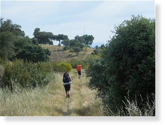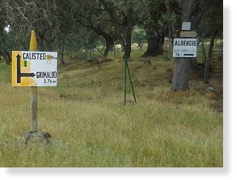 | 銀の道19 Canaveral - Riolobos キャンプ場の宿 5月15日 ここのアルベルゲの朝食は最高だった。パンにチーズやハムを挟んで3枚食べ、コーンフレークも牛乳を掛けて食べる。ジュースも2種類飲んで、仕上げにはカフェコンレチェ。普通、朝食があると言ってもパンにマーガリン・ジャム。それとコーヒーがせいぜいだ。下手するとビスケットとコーヒーだったりする所もある中で、チーズ、ハムなどが供されるアルベルゲは初めてかも知れない。同じテーブルに座ったおじさんなんか、チーズを挟んだパンを昼飯用にしようと紙ナプキンに包んで持ち帰った。朝早く出立するので買い物もできないし、次に店があるのは20数キロ先になるだろう。食料の確保は大切だ。私は袋入りのミニカステラを貰っておく。 朝7時半から歩き始めるが、赤と白のマークをカミーノと勘違いして山の中に入って行ったら迷ってしまう。フランス国内ではこれがGR65と言ってカミーノの筈だが、ここいらでは別のハイキングルートらしい。でも山の中を15分ほどさ迷っただけで本来の黄色い矢印を見つけて合流できる。 ![]() 前方に冗談みたいな急坂が現れる。しかしカミーノはそこは上らずに、右に折れて行くだろうと安易に考えていたら、その急坂を登らされる羽目に。ずっと上の方ではフランスおばちゃんのエディスが喘ぎながらも一歩一歩ゆっくりと上っているのが見える。余りの急坂なので、狭い山道だが小さく斜めにジグザグ上りを駆使して登りきり、ほどなくエディスにも追いつく。ゆっくりゆっくりと歩く人で、距離を保って後ろを歩いていくと、リハビリみたいにのんびり歩くことが出来る。 森の中の小さな分岐にやって来ると、泊まろうと思っていたGrimaldoアルベルゲの看板があった。エディスにはGrimaldoに泊まると言ってあったので、そこで立ち止まって「ここだよ」みたいな事を言ってくるが、まだ9時半なので通過する。ここはコルク樫の森のようだ。コルク樫はテレビでは見たことあるけど日本にはないので初めて見た時は驚いたが、ここ銀の道にはコルク樫の森があちこちにある。ほかの巡礼路では見たことなかったので、これはこの地方の特産なのかも知れない。コルクにするために途中から木肌がひんむかれた木も見える。こんなことして枯れてしまわないのか心配になるが、その状態で大きくなった樫の木もあるので大丈夫のようだ。 ![]() 今までも通って来たが、コルク樫が東京ドーム百個分ほどの面積にこれでもかと言うほど植わっている。ワインが水並の国なのでコルクの需要もこれでもかと言うほどあるのだろう。エディスと前後してコルク樫の森を散歩気分で歩いていたが、途中で大休止にするらしいので、それからは一人旅になる。 今日は開けたり閉じたりする門を何度も何度も通過する日だった。そこへ謎のカップル登場。この二人の歩きパターンはいつも同じで、少年がかなり先を後ろも見ることなく黙々と歩き続け、女性がその後を追っていくというパターンだ。最初に会ったとき女性はニコリともしなかったが、今日は4回目なので笑顔で嬉しそうに話しかけてくれた。スペイン人らしいが英語も喋るのでゴチャ混ぜ会話で楽しい。そのあと会ったときは少年だけだったので、女性はトイレにでも行ってるのかと思ったが、その後2回会ったときも少年だけだったのでどうしちゃったんだろう?一本道の巡礼路なので途中に別の道があるとも思えないのだが?今日はGrimaldoまでのショートコースの予定だったので背中のタンクには500mlしか入れてなかったが、そこは通過してしまったので今晩の宿に辿り着く前に水が尽きてしまった。緊急用に持っているペットボトルの水1口分は村の目鼻が付くまで飲まずに我慢する。 今日の宿はルートから少し外れたところにキャンプ場があるという情報を得ていたのでそこを目指す。ここはまったく選択肢に入ってなかったので事前調査ゼロだったが、フランスおばちゃんが泊まると言ってたので行ってみることにした。距離も手頃だし世界遺産があるらしい次のガリステオまで9キロと近いので泊まる人が少なく穴場だそうだ。テント持ってないけどと言うとバンガローがあるようなことを言っていたが、それも良く分かってない。舗装路に出てから歩き続けると、分岐に意味深な矢印を発見する。黄色じゃないから巡礼路とは違う。これがキャンピング場への誘導なのかなと思い、タブレットで確認するのだが、キャンピング場を知らないのでさっぱり分からない。そこへ少年がやって来て無言で通過していった。また女性は一緒じゃなかったので、どうなってるんだろうと謎が謎を呼んだ。 この矢印は関係なさそうなので先に進むと大きな建物が前方に現れだしたので期待に胸が膨らむ。近づいてみると壁には巨大な帆立貝が描かれているので間違いないだろう。気をよくして入って行き良く分からないスペイン語ながらチェックインに成功する。キャンプ場なので手続きは