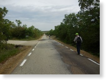 | 銀の道25 Fuenterrble de Salvaterra - Morille 最高地点通貨 5月21日 今日は銀の道で標高が最高地点の所を通過するそうだ。それなのに次のアルベルゲまでは28.6kmと少し長めが分かってるので全員が気合を入れて歩き始めた気がする。6時半から7時ちょっとのあいだに、このアルベルゲに泊まった20数人が一斉にスタートしたので、銀の道で初めて巡礼者の行列を見た。と言っても一度に見渡せるのはせいぜい7,8人だが心が躍った。アンドレアも私の少し前をショートカットの女性とお喋りしながら歩いている。後で分かったが、この女性もアンドレアと同じオーストリアからのソロだったので互いにドイツ語でお喋りできて楽しかったろう。 緩やかな上り下りが続き、道があるような無いようなだだっ広い森の中を歩いて行くが、前の人を見ていればいいので気楽だ。ずっと気持ちよく歩くことができるが一人だけだったら迷ってしまいそうな森だ。グリム童話なんかで子供が森の中で迷う話がよく出るが、そう言ういかにもな森は銀の道ではそこかしこにある。1時間ほどでベルギー夫婦を抜いて1時間半でエディスに追いつく。この人たちは一緒にスタートしたのだろうが、歩く速度の違いが如実に現れている。エディスは鈍いけど2本のスティックを使いながらいつも変わらぬ足取りで淡々と歩いている。 徐々に山道になってきたのでいよいよ最高地点を通過する山道に入ってきたようだ。ずっと上っていくと風力発電の風車が何機も立っていて十字架も立っている所までやって来た。雰囲気からして頂上に見えなくもないが予想した時間より1時間早い。じゃぁここはまだコブで向こうに見える山が最高地点の山なのだろう。これからこの山を下ってからあの山を越えるには、どう考えてもあと3時間は掛かりそうなので今日は遅い到着になると覚悟する。下りがスッゴい急なので膝を守るためにスティックを前に突き出しながら滅茶くちゃ慎重に降りる。こんな山の中で怪我したらエライこっちゃだ。 降り終わると左に見えている山には向かわずに右回りして平地に出てしまった。そのまま行くと今度は舗装路が現れ、このまま谷あいに道は続いているのが分かった。え?キツネにつままれたようだが知らない内に最高地点を越えてしまったようだ。じゃぁさっきの十字架のあった所が最高地点だったのか。そこをタブレットでバッチリ撮ってフェイスブックで応援してくれてる人達に見せようと思ってたのに残念なことをした。 最高地点を越えたはいいが、ここからの丘越えが長かった。だらだらだらだらと道が続き、あの丘を越えたら村が見えるのかなと何度思ったことか。丘が続く道は遠くまで先が見通せるので始末が悪い。結局なだらかながら大きな丘を5つほど越えた気がする。途中に日陰があったので持参の食料を食べながら小休止にする。休むと誰かがその横をブエンカミーノとか言いながら通り過ぎて行った。 サンペドロ村へ向かう分岐が現れた。サンペドロにはアルベルゲがあることを知っている。前後して歩いていた巡礼4人がここで立ち止まっで数分間の協議をする。全員、次の村Morilleに行くことになった。そっちのアルベルゲの方が良いと言う評判があったので。サンペドロ村とMorille村の両方が見える地点までやって来た。サンペドロ村からこちらに向かって歩いてくる巡礼も見える。Morille村は近そうに見えるが歩くとやっぱり1時間は掛かった。予定より4km余計に歩いてしまったので今日は山越えしたのに32.6kmになった。ようやる。 ここのアルベルゲのチェックインは隣のバルでやると言う情報を得ている。そのバルに入って行くと数人の巡礼が受け付け待ちをしていて、その中にアンドレアの顔を見つけて喜び合う。宿代は私営なのに6ユーロと安め設定。隣にあるアルベルゲは小さくて満杯だから、少し離れた別のアルベルゲまで案内されてぞろぞろと付いていく。歩いて5分くらいか。 ![]() このアルベルゲはアンドレアも昨日、良いアルベルゲだと言ってたしネットでも評判が良かったが実際チェックインしてみるとロクなもんでなかった。 良くないところその1、シャワーとトイレが男女共用で2つずつ同じ部屋にあるのだが、シャワーは両方とも刷りガラスなので異性が使用してるとトイレにも入ることができない。そんなの気にしないと言う人はこの限りではないが。 その2、キッチンがない。これは節約派には大きな問題。電子レンジはテーブルの上にちょこんと有るもののコンセントを挿しても動作しない。 その3、ベッドルームは2階でトイレは1階なので、狭くてギシギシ音がする階段を下りなくてはならない。音なしで階段を使うのは不可能。これは夜中にトイレに起きる私には問題。 その4、私営なのにWi-Fiがない。それで6ユーロなんか!? 良いところを上げるとしたら、6ユーロと安いところとベッドが割合ゆったりと置かれているところの2点か。 いっぱい歩いたので早くシャワーを浴びたいが、なかな