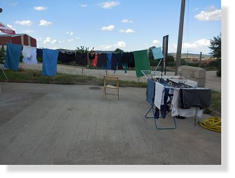 | 銀の道34 Granja de Moreruela - Tabara 良いベルゲ タバラ 5月30日 6時50、グランハのアルベルゲを出発。町の中からアストルガ方面とサナブレス方面への道標がしつこく何度も出てくる。この町が分岐点なので、ここで違った方へ歩き出したら次に合流するのは360km先のコンポステラだ。取り返しが付かないと心配してくれてるのが分かる。ムチャスグラシアス。今日はTabara迄の25.3km。遠くに昨日の宿で一緒だった夫婦連れを見ながら歩いて行くが、二人が日陰で休んだところを抜いたらそれ切り一人歩きになる。 ![]() 暫く行くと湖が出てきて、その両側には切り立った岸壁が現れる。ダイナミックなその風景はギリシャ神話の映画に出てくるようなひとコマだ。素晴らしい景観に写真を撮りながら進むと、これまた雰囲気のある古い橋が登場。またまた写真を撮りながら橋を渡り終えるとあらぬ方向へ矢印が伸びている。 えっ、このガードレールの切れ目を通って橋の下へ行けと?誰もが不審に思うのか、矢印が普段の5倍付いている。マジか!と思うが巡礼路を外れるのは嫌なので滑落しないように注意深く降りていく。まぁそれからが凄い道だった。岸壁の道なき道を登り降り、幅が30cmしかなく踏み外すと湖へボチャンの綱渡りのような道も進む。もちろん、落ちないよう夢中なので残念ながらここで写真を撮る余裕はない。![]() 対岸から見たときはギリシャ神話みたいだなんて喜んで写真を撮っていたのに、結局この崖の上までやって来てしまった。こんな所で足を踏み外して湖に落ちたら誰も助けは来ないだろう。良かった、無事に越えられた。安心した所でバナナを出してエネルギー補給。ひと休みしてたら野生の鹿が10m前を通りすぎて行く。野兎は何度も見たが鹿は初めてだ。そのくらい人が来ない道と言うことか。こんな道だと手押し車を引きながら巡礼しているドイツの夫婦やオランダのベンには通れないだろなと思った。 日本人が銀の道を歩いたブログは幾つか読んだことがあるが、誰もこのスペシャルな道に言及してなかったので、前の人たちは舗装路を行ったのかも知れない。ここでお役立ち情報:雨の日にこの道は歩かない方が懸命です。滑って転ぶだけじゃ済みません。最悪、死んじゃいますよ。 ずっと歩いて行くと村が見えてきた。どうやらRosa村のようだ。ロサからタバラへは14km、3時間か3時間半と言うところだ。50分歩いて次の村に入る。ここはFaramontas de Tabaraらしい。ここからタバラへは7kmで、既に遠くにタバラの町が見えている。もうすぐだと分かってとてもラッキーな気持ちになる。この辺りは珍しく村が頻繁に現れるので安心して歩くことができる。ちょっと疲れているので村のバルでコラカオ1.5ユーロを飲んでエネルギー補給しておく。少し休んで腹に何か入れると力が蘇る。 この辺りにも新しい線路の敷設現場があった。前に見たのと同じ線路が続いているのかも知れないな。平坦で特徴のない道を延々と歩く。タバラの町に入るとすぐ教会があった。ムセオと書いてあるので古い教会を利用した博物館のようだ。スタンプが欲しいので中に入ってみる。受付に女の子がいてスタンプを押してくれるが勝手に展示物の説明まで始め出した。暇でしょーがない所に私が現れたってことなんか!?スペイン語なのでさっぱり分からないので有りがた迷惑なんだがな。ここは入場料はドナティーボらしく受け付けに置かれたザルに硬貨がいっぱい入っている。聞いても分からない説明だったけど、ドナティーボと言いながら0.5ユーロ硬貨を入れてみる。公営アルベルゲの大まかな位置も教わっておく。 町の中心らしい本通りを越えると教わったとおり広場があった。そこに「A→」の矢印を発見。広場からは大分離れていたが、矢印を追いながら1時少し前にタバラのアルベルゲに到着。写真で見るよりずっと新しく見える建物だった。後ろにビルが写っているがアルベルゲは茶色い平屋の建物だ。オープンは2時となっていたが、門の前に車が停まっていたのでオスピタレロがいるのかとフェンスの中に入っていくと出迎えてくれた。「2時?」と尋ねると入ってもいいと言ってくれたので嬉しくなる。暑い中を歩いてきたので一刻も早くシャワーを浴びたかったから。※お役立ち情報 Aが付いた矢印はアルベルゲへ導くもので巡礼路とは別ものです。 アルベルゲを探すときはA付きの矢印を探しましょう。 和風マリアカードを「サンタマリア デ ハポン」と言いながら進呈する。すると壁にいっぱい下がっているアクセサリーを指してスペイン語で何か言っている。理解できないでいると、いま上げたカードを自分の胸に当てて、次にアクセサリーを私の方に指すのでプレゼントしてくれると言うのが分かる。矢印が描かれた皮製のネックレスタイプのを頂くことにする。これはバックパックに吊るしているホタテ貝の隣に下げることにした。夕方7時からセナ(夕飯)で、朝食に洗濯までしてくれてドナティーボで良いそう