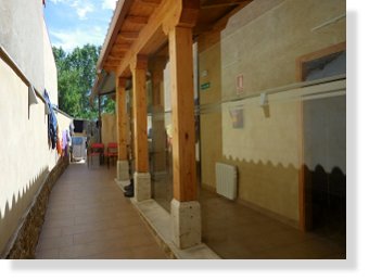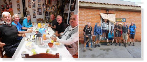 | 銀の道35 Tabara - Santa Marta de4 Tera 教会のツアー 5月31日 前の晩、寝るときに誰かが「6:30オンライト」と言ってたとおり、6時半になったら全員が起床。外からオスピタレロもやって来て朝食の準備を始めてくれる。また全員でワイワイと朝飯タイム。朝から楽しい。(下の写真左:右端がビール腹のカルロスで反対側がウェールズ・ドラゴン)) ![]() 7時半に全員が揃って玄関前に並んで記念写真を撮ることになった。みんな自分のカメラを手渡しては撮ってもらっている。とても楽しく良いアルベルゲだった。 オスピタレロが教えてくれた巡礼路へ復帰する道を全員で歩き始める。すぐビヤ樽腹のスペイン人カルロスが遅れ始めるが自分のペースで歩くのはとても大切だ。 長い急な坂を越えた次の村Villanueva de las Perasにバルがあったので、みんなで休んでいく。朝飯を食べて幾らも経っていないのにもう軽食を食べている人もいる。私は朝からビールも何なんでコラカオを飲んでスタンプも押してもらう。イギリス組はカフェのお代わりをしたのでドイツ女性は一足先にスタートして行った。ほどなくカルロスが追いついてきて、このバルでゆっくり休むそうだ。 私も一人でスタートする。遠くにドイツ女性が見えるが足が速く追いつくことはできない。ソロで歩く女性に軟弱なのは一人もいない。足がチリチリするので肉刺ができたのが分かった。早めの手当てが肝要なのでチェックしたら左の靴下に穴が空いた所に1cmの水泡ができていた。傷バンを貼ったら痛くなくなったので取りあえずこれでオッケーだ。 靴下は5本指の上に厚手の2重履きにしている。私の場合こうするとほぼ肉刺はできないが今回は穴が空いてしまった所の段差で擦れてしまったようだ。穴が空いても5本指靴下はスペインでは手に入らないので捨てないで履き続けることにする。まだ2足の5本指を持っているが先は長い。 サンタマルタ手前の公園で4人の巡礼が休んでいたので一言ことばを交わして通り過ぎる。そこからアルベルゲはすぐだった。教会前の広場から迷わず1時半に到着、今日も一番乗りだが、すぐ続々とやって来る。イギリス3人組とスイス人もやって来たが、ここには泊まらずに次を目指して行ってしまった。昨日のアルベルゲに泊まった7人の内、ここに泊まるのは私とカルロスだけだった。 綺麗で近代的なアルベルゲだがオスピタレロは不在で好きなベッドを取っていい大好きなスタイルだった。公園で休んでいた先ほどの4人グループがやって来て、どうも私がいる部屋を自分たちだけで使いたいような雰囲気だ。部屋はどこでも良い私はベッドを譲って隣の部屋へ引っ越してあげる。でも6人部屋なので後から誰か入る可能性あるけどね。隣の部屋はまだ誰もいなかったが、朝少し話したことがある夫婦連れが入ってきた。この二人ともこのあと彼方此方で一緒になって仲良くなっていく。シャワー、洗濯してたらシエスタの時間が迫っていることに気づき急いで店を探すことにする。村の人に聞いてみてもすぐには見つからず焦る。結局、見つからなかったのでアルベルゲに戻るとキッチンに町の地図が貼ってあった。ふむふむ、Tienda(小さな店のこと)は私が行ったのと逆方向の少し分かりづらい所にあるようだ。ダメ元で行ってみる価値はある。もし閉まっていてもシエスタ明けの時間だけでも確認できればいいや。 店は見つかったが、ここも看板などはなく普通の民家のようだった。やっぱり入り口は閉まっている。そしたら2階の窓から親父が声を掛けてきた。入り口はここじゃなくて横に回った所だそうだ。そこは扉が開いたので瓢箪からコマだった。何を買おうかなと見ていたら、表にライトバンでパン屋が配達にやってきたので直接買うことができる。大きい焼き立てバゲットが0.5ユーロとスペインのパンはとても安い。店に戻って1リットルビールにトマト、チーズ、オレンジ、チョコビスケットに野菜がサイコロ状になった大きな瓶詰めにスープの素2に卵3、りんごまで買ったので買い物金額の最長不倒距離12.52ユーロになった。明日は店がないところを30km以上歩くので食料を多めに買うぞ作戦は成功した。 今日のご飯は色々な野菜が入ったビン詰めをスープに入れて、更に卵3個も入れたので中々豪華だ。腹一杯になっても食べ切れなかったので、明日の朝用に残りは取っておこう。キッチンの壁には地図のほかにWi-Fiの案内もあった。「ここにはないけど近くの役場のが使えるよ」とパスワードまで書かれていた。至れり尽くせり。役場隣の教会前には手ごろなベンチがあって、ほかの巡礼者もそこでWi-Fiを利用していた。まことに便利。Wi-Fi環境が遅れた日本も早くこうなって貰いたい。 近くの教会は歴史があって有名な教会らしい。夕方から案内ツアーがあるそうなので参加してみることにする。時間になったらセニョーラがやって来て教会の扉の鍵を開けてくれた。ツアーは1ユーロで、この人はアルベルゲの管理人でもあった。