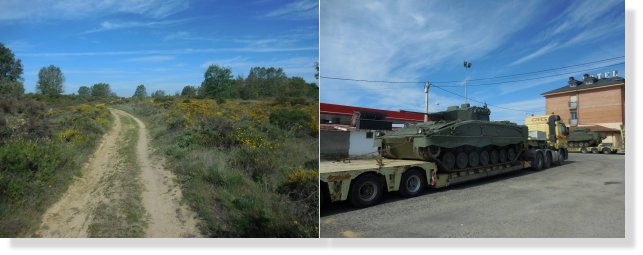 | 銀の道37 Villar de Farfon - Mombuey カルロス膝を故障する 6月2日 Farfon の変わったアルベルゲの朝。食料が尽きてきたのでアルベルゲのキッチンに備蓄してある食材の中からスパゲッティの麺だけもらって日本から持参のペペロンチーノの素でスパゲティを作ることにする。今までペペロンチーノの素はスープにして飲んでばかりいたけど、やっと本来の使い道ができた。炭水化物は歩くエネルギーになるそうだ。それとインスタントコーヒーで簡単な朝飯。明日は日曜なので今日は買い物注意だ。ドナには10ユーロ札を入れて8時にスタートする。予想どおりずっと独り歩きが続く。うら淋しいいかにも巡礼路らしい道を歩き続けていくと次は村ではなく小さめな町が現れた。9時半、カルロス達が泊まったと思われるアルベルゲが現れる。ベッド数は28もあるそうだから、やっぱり大きくて立派なアルベルゲだ。町なのでスーパーもありそうだしこっちの方が良かったかな。まぁ話の種としたら昨日の方が面白かろうと痩せ我慢をしておく。 ![]() 町を抜けるとまた巡礼路ぽい田舎道がずっと続くが、この辺りはお花畑も点在しているので目を楽しませてくれる。Mombueyへ入る手前のガソリンスタンドに戦車を積んだトランスポーターが3台も停まっていたので珍しがって写真を撮る。戦車の写真って撮ったら怒られるのかなと思い素早く撮影する。さすが軍隊のある国は違う。毎日空にはジェット機が飛行機雲を何本も描いているし、きっと戦闘機だろう。 ![]() 目的地のMombuey町に入って行くと道の両側に店が並んでいるので、スーパーがあるかとチェックしながら歩く。そんなことしながら歩いていくと町の外れまで来てしまい、知らない内にアルベルゲを通り越してしまったようだ。そんなに大きな町じゃないな。タブレットを出して現在位置を確認したら、印刷して持ってきた地図は町に入る道が想像とは逆だったことに気付く。どうりで町の様子が地図と違って見えた筈だ。地図を逆さにしてみたら、すぐにアルベルゲへ曲がるわき道を発見する。 今日のアルベルゲもまっこと小さな家だった。時間が早いけど扉は開いていた。誰もいないだろうけどオラーと一声かけて入っていったらカルロスがベッドの上にいたのでびっくりするやら嬉しいやら。どうやら膝を故障したようで、ここで連泊なのか、或いは前のアルベルゲから少しだけ歩いて来ただけのようだ。何にしてもカルロスがいたので嬉しい。体重がある人はほぼ膝をやられてしまう。カルロスもビール腹なのでご多分に漏れなかったと言うわけか。今日は病院に行ってくるんだと足を引きづりながら出て行った。私は来るときに目をつけておいたスーパーへ買出しに行く。有難いことに冷えた1リットルビールにトマト3、アスパラの瓶詰め、ヨーグルト4、チョリソー1袋、ミニカステラ2、オレンジ、さくらんぼで8.58ユーロ。毎度まいど同じような買い物内容を書いて申し訳ないが、これは自分への記録でもあるのでご勘弁。 昨日が相当な粗食だったので今日の昼兼夕飯はサクランボも加えて少しだけ豪華。この小さな小さなアルベルゲには皿が1枚とコップが2個だけ、他は一切なしと潔い。でもレンジがあったからパンにチョリソーとチーズを挟んでチンして食べる。一人宴会中、スペイン人の男性ソロが到着。20数キロ歩いて来たそうだから、私より8km離れたOllras