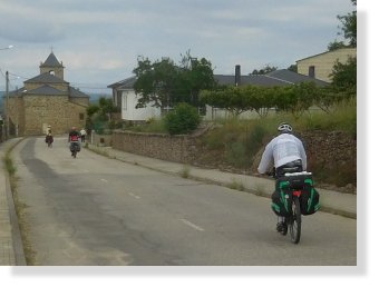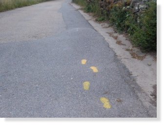 | 銀の道38 Mombuey - Asturianos ギャエレ復帰する 6月3日 簡単な朝飯を食べて出発の準備をする。アルベルゲの鍵はカルロスが通り反対側にあるオスピタレラの郵便ポストに放り込んで来てくれた。7時20、元気に出発。と言っても歩き出しは必ずひょこひょこ。 最初は平地だったが、徐々に上りになってきて後半の2時間は山の中になる。昨日のアルベルゲはドナティーボだったが、宿には昼も夜も管理人が一切来なかったので寄付するのを忘れたことに気がつく。いまさら戻れないので勘弁してもらおう。数十回ドナのアルベルゲに泊まったことがあるが、寄付を忘れたのは初めてだ。もしかして昨晩泊まった全員が忘れてたりして。 次の村の中で後ろからやって来たチャリグループが声を掛けてきた。昨日の夕方アルベルゲを訪ねてきたイタリア人の一人だった。ちょっと話をしたので覚えていてくれたらしい。ブエンカミーノと言って見送る。自転車のスピードは歩きの4,5倍だろう。この時間に追いつくということは宿を9時ころ出発したか。さすがに自転車は余裕がある。 カルロスを抜くときに膝の具合はどうだと聞いたら、ムイビエンと言ってるので安心した。この辺りの家畜柵は石を積んだ垣根で区切ってあった。石は重くて運ぶのは大変だろうがただ積むだけで腐ることもないので便利そうだ。 今日はショートコース、4時間歩いただけで今晩の宿があるAsturianosの村に到着する。短時間だったが山の中だったので平地の倍疲れた。 村に入ると道路上に黄色いペンキで足跡がアルベルゲまで続いていると言うお茶目な案内があった。迷うことなく体育館に併設された一風変わったアルベルゲに到着する。受付はこれも体育館横に併設されたバルだった。取りあえずビールを一杯飲ませてもらおう。何か食べたい気もするが、スーパーがあるならそっちの方が安上がりなので村の様子を見てからにする。 ベッドルームは2段が3台。6人しか泊まることができないようだがベッドの間隔はゆったり置かれておりマットレスの色も赤と黒でお洒落だ。いつもの習性で一番奥のベッドに寝袋を広げていたらギャエレ達が到着してきた。あれ?ギャエレは最後にあった時にフランスに帰るようなことを言っていた筈だがな。何故なのか言葉がほぼ通じないので判明のしようがないが、今度はサンチャゴまで行くと言っている。フランスに帰ると言うのは私の聞き間違いだったのだろうか。それにしては8日も会わなかったので真実は謎のまま。二人の関係も謎のまま。何はともあれまた道連れになれるなら嬉しい。シャワーから出てきたらカルロスが到着してきた。また膝はどうかと聞いてみるが今回もムイビエンだった。フランスの老夫婦がやって来てこれでベッドはコンプリート。その後やって来たイタリア爺ちゃんは廊下にべったり敷いたマットレスになった。ここのアルベルゲは定員オーバーしたらマットレスになることをブログで読んでいたが、体育館が併設されているのでマットレス泊は何人でもいいのかと思っていた。でもマットレスで寝られるのもアルベルゲ内だけで、マットレスを敷けるスペースはひとつだけのようだ。これ以上の人はやって来なかったので良かった。 明日は日曜で買い物ができないのに、この町には店がなさそうだ。仕方ないので体育館隣のバルでビールとボカディージョを食べてみる。でもその後ギャエレ達がレジ袋を提げて帰ってきたので、どこで買ったのかと教えてもらい10分ほど離れた村のメインストリートまで出かけてみるもシエスタ中で入れなかった。5時過ぎたので午後のオープン時間だろうと思ったが、入り口の紙には6時とあった。残念な気持ちでアルベルゲに戻る。シャクだが飲み食いできないのはもっとシャクだし何しろ明日は買い物が出来ないので真剣だ。6時になったらまた行って見ることにする。そしたらマットレス泊の爺ちゃんが「ティエンダ?」と言って付いてきた。この爺ちゃんはイタリア語しか話さないが面白いキャラなので言葉は通じなくても結構楽しい。髭もじゃで小柄なので妖精みたいな爺ちゃんだ。二人で訳の分からない会話をしながら店に行くと今度はちゃんと開いていたので一安心。 缶ビール、ファンタ、ナッツ1袋、トマト、バナナ2にヨーグルト4で5ユーロと35だった。アルベルゲにキッチンも食堂も無いけど外に出してあるテーブルで食べることが出来る。昨日から持ち歩いているチョリソーも加えて晩飯とする。ナッツのプラケースの開け方が変わっていて、縁にある「Open」のつまみをパチンと破ると開けることができた。文章だとちょっと説明できない。 ここの丘の上にはクレー射撃場があって、バンバン撃ちまくっている。滅多に見られないものなので見物に行って来る。5,6名ほどのグループが3つ位あって、1グループが撃つ場所をひとつずつずれて移動しながらぶっ放している。一人が10発くらい撃つようだ。遠くに打ち出される皿なのにみんな上手に当