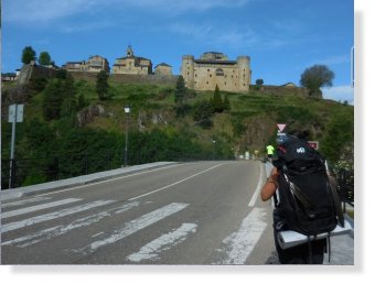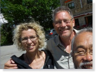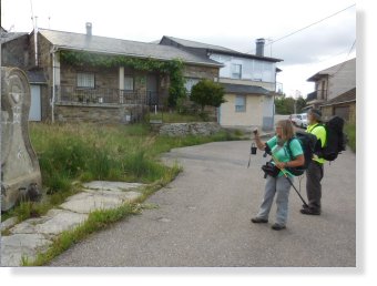 | 銀の道39 Asturianos - Requejo こりずにまた迷う 6月4日 アルベルゲでヨーグルトだけ食べて7時5に出発。玄関前のイスに座っていたギャエレが手を振って見送ってくれる。妖精みたいなイタリアじいさんと歩き始めるが鈍いので先行する。昨日からずっと山の中なので最初から上り下りの連続。座るのに手頃な石があったのでビスケットを食べながら小休止していると、爺さんがお愛想を言いながら通り過ぎて行った。私より10歳くらい上に見えるが元気だ。しばらく歩いていくと100mほど先で昨日のアルベルゲで一緒だったスペイン人らしい夫婦が道端で協議をしている。分岐がある訳でもない山の中の一本道なのに変だな?声を掛けてみると、ここはカミーノとは違うんじゃないのかと言っている(らしい)。夫のタブレットには日本で良く見ていたEROSKIサイトの地図がダウンロードされていた。自分も心配になったのでバックパックからタブレットを引っ張り出してGPSで確認すると確かに巡礼路からは外れていて、今日の中継点サナブリアは逆の方になっていた。3人で100mほど戻ってみると、藪に隠れた道標を発見する。これを見過ごしたので直進してしまったのか。道標には右折のしるしがあり、巡礼路は何気に歩いていると見落としてしまうような細い道だった。私もこの夫婦がいなかったら何処までも歩いていってしまったことだろう。危ないあぶない。後続の巡礼者のために夫の方が道標が見えやすいように藪を払っていた。 その縁でしばらくの間、この夫婦と一緒に歩くことになった。二人とも写真が好きなようで所々で足を止めて写真を撮っている。奥さんの方が村の中にあった教会の扉にペトロとパウロが刻まれていると教えてくれる。※何日も後にやっとわかったことだが、この二人はフランスとイギリス人でお互いに夫婦でも何でもなくソロ同士だった。そして数日後に私は二人とは何日も一緒に行動する仲になっていくのだからカミーノとは不思議なもんだ。 10時半、サナブリアの町に入った所で私営のアルベルゲが道沿いにあった。2日前に一緒だったスペイン人が歩いていたので声を掛けてみる。彼はここに泊まるらしい。私は次のレケホ迄行くと伝えたら、15kmもあるから止せと言われるが地図では12kmだ。3時間で着くはず。到着予測は1時半なので手ごろだ。バモスと言って分かれる。 道の先に聳え立つような丘があって、その上に城が建っていた。下から見上げるのでなかなかの威容だ。写真を撮っていたらギャエレ達二人がやって来た。この町のバルで何か食べるそうだ。私も何か食べたいかなと思いながら町を通り越してしまう。この町は城があるくらいだから観光地になっていた。土産物屋には欲しかった絵葉書が売られていたが、簡単に見つかるとすぐに買わなくてもいいかなな気持ちになってスルーしてしまう。アルベルゲのある町で買えばいいやと思ったが、そのあと何日も絵葉書に出会うことはなかった。町で食べることもできなかったしチャンスに後ろ髪はないのだ。町を抜ける所でカミーノを見失っていることに気づく。て言うか、町に入った所から既に矢印はなかったので、すぐ巡礼路を外れてしまったらしい。店の前にいる人に教えてもらったが、この人は巡礼路を知らなかったと見え次の町方面だけ教えられたので矢印がない舗装路を延々と歩く羽目になる。 とんでもない方向違いだと取り返すのに何時間もかかる。そうなるのを心配してタブレットを出してGPSで2度も確認しながら歩き続ける。坂を上ってから長い下りになったので、地図の高低表だとレケホ村へ続く道はそうなっているので、もう着くか、意外に近かったなと糠喜びしてからガッカリすることになった。しかし、この村の中にも矢印を発見できたのでうれしくなる。本線とは違うがここも巡礼の派生路になっているようだ。遠くから子犬がキャンキャン吼えながらやって来た。小さいのに凄い強気。こちらが立ち止まることなく近づいていくと後ずさりして逃げていき、犬の縄張りから離れて行くとまた吼えながら追っかけてくる。昨年、ポルトガルの道でこんな風に良く吠える子犬を無視してたら後ろからズボンに噛みつかれたことがあったので、子犬だからと油断してはいけない。近づいてきたら振り向くとぱっと逃げていき、それを4・5回繰り返している。やかましいやっちゃな。こんなのは片っ端からパチンコで撃ってやったらどんなにスッキリするだろう。 やっと自分の地図にも載っているオテロ村を示す表示が現れてきたので気を良くする。ここからならオテロ村を経由しないで直接レケホを目指すほうが合理的らしいので、分岐は曲がらずに直進する。ほどなくTrife村の表示が出たらもうレケホの村が見えてきた。これでやっと一安心。今回も迷った時間が長かった。なかなか学習しない。 村に入っていくと買い物帰りのおばさんが「アルベルゲ?」と声を掛けてくれたので「ムニシパル(公営)」と答える。へ