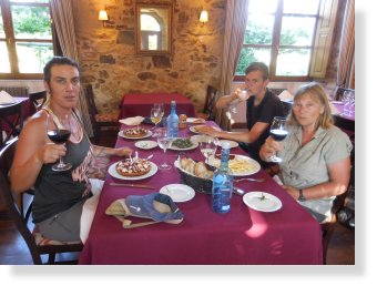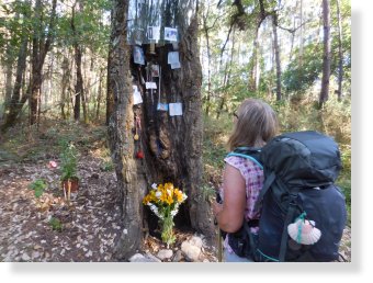 | 銀の道51 Bandeira - Outeiro レストランで初ディナー 6月16日 アルベルゲで朝飯を食べて8時に出発。全員並んでは歩かないが、遠くに見える程度の距離を取ってはいるから、まったく単独よりは安心できるし心強い。男の私でもそう思うんだから、女性ソロのリリアンはメンタルが強いんだろなと想像する。暗い道を歩いたり舗装路を歩いたりしながら黙々と進んでいく。山を抜けたところの村にバルがあった。今日初めてのバルだし休むにも手ごろな時間を歩いてきたのでみんなで寄っていく。バルの犬なのか、真黒な中型犬がルアンに妙に愛想よくしている。ルアンは犬が好きらしく、テーブル下に寝転んだ犬の腹を盛んになぜている。ここはリリアンが奢ってくれた。 途中にあった枯れる一歩手前の木には沢山のカードや花が供えてあった。ここで誰かが亡くなったようだが肝心の墓標がなかった。上の方にはプラスチックの覆いがあり、その中にマリア様の小さな像やロザリオが供えてあった。どういういわれがあるのか知りたい所だが、分かりようがないので残念。次の町はそこそこの大きさだった。今日の目的地までは残り数キロかな。その村には店がないのが分かっているのでここで買い出ししておこう。ギャエレもその積もりのようで二人でスーパーDiaに入っていく。大量のカステラ、バナナ2、ポテチ、アスパラ缶に缶ビールで5ユーロちょっと。レジに並んでいたらカートを押した地元の婦人が強い口調で何か文句を言っている。通るのに邪魔だとでも言っているようだ。顔つきからギャエレがカチンと来たのが分かった。ギャエレがそのおばさんにスペイン語で何か言ったら掌を返したように優しくなった。ハポンと言う単語だけは聞き取れたが後はなんと言ったんだろう? 先に会計を終わった私はスーパー入り口のベンチに座って今買った缶ビールを飲みだす。缶ビールをゆすりながら歩けないし折角冷たいのが温まっちゃうから。ギャエレも会計が終わって出てきたので、飲む?と勧めてみたがノグラシアスだった。ま、飲みかけを勧めたんだから当たり前か。 12時50、オウテイロのアルベルゲに到着する。近代的でゆったりと広く作られたアルベルゲだ。先着に一人男性がいただけで、我々はその次だった。ここは13時オープンだが鍵は掛ってなかったので入ることができた。暑い中の歩行なので少し疲れたが元気に歩きとおせた。シャワー、洗濯後、寛ぎスペースで買ってきた物でお昼にする。ルアンが牛乳をくれたので飲んでみるが、日本のと同じ味がしたので何だかほっとするものがある。ビールやワインと違って牛乳の1リットルは飲みきれないので買うことがない。なので飲むのは久しぶりだ。スペインの牛乳も日本と変わらないんだな。オスピタレラは4時ころやってきた。公営なので今日も6ユーロ。大きなアルベルゲだが残念なのは周りに店もバルもないこと。でも少し歩いた所にレストランがあるそうなので、夕飯は皆でそこに行くことになった。7時にホテルのレストラン目指して歩き出す。ホテルのレストランなんて初めてだけど、うんと高いのかな?ちょっと緊張だ。 着いたホテルは山の中なのでシティーホテルと言う訳には行かなくて小さなホテルだった。付属のレストランもバルのあんちゃんくらいか。メニューの中にプルポ(蛸)があったのでそれと白ワイン、デザートはエラード(アイス)にしてみた。4人全員用に1皿のピニエント・デ・パドロンを頼む。これは私の好物で、小さなピーマンの素揚げに岩塩をまぶしたものだ。とても美味い。ギャエレとリリアンは今日も赤ワインでルアンは今日もコーラ。いつもみんな飲む物が決まっている。割る4での支払いは21ユーロだった。ホテルのレストランなので、これでも安い方かも知らないが、一日の目標経費20ユーロを一食で軽く越えてしまったよ。 隣のテーブルには12人ほどの大所帯がコース料理を食べだした。見ると全員が同じシャツを着ていて、Camino de Santiagoの文字が縫い付けてあるので、なんだろな?ホテルに泊まっている団体の巡礼?それともこの辺りの巡礼友の会のメンバーか?私たちの他に一人の男性巡礼もアルベルゲから一緒に着いてきたが、この人はレストランには入らずに外のテラスでビールを飲んでいたな。帰りも一緒に帰ってきたので、帰り道が分からなかったのか?明日はなんと5時スタートに決まったので、今晩の内にできることをやっておく。パッキングはできる限り進めておいてヘッドランプの用意もオーケー。みんなの朝食用に買っておいたカステラも全員にデサジュノだよと念を押しておく。でないとまた遠慮されるから。10時を回ったがまだ明るい。 銀の道52へつづく |