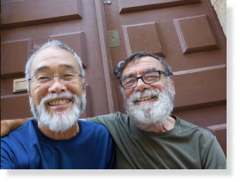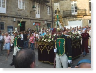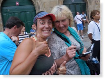 | 銀の道53 Santiago カミーノマジックみたび 6月18日 メノールのアルベルゲの朝。ゴールのサンチャゴなので7時だがまだみんな寝ている。0階のキッチンへ降りていってWi-Fiがある内に明日からのプリミティボの道の情報を収集する。冷蔵庫に入れておいた、昨日食べきれずに持ち帰った豚肉ソテーをチンして暖め、カステラ、それにコーヒーで朝飯。レストランからの肉が入っただけでとても豪華な朝食に感じるしインスタントでもコーヒーを飲むと凄く気分が落ち着く効果があるのでうれしい。ベッドルームへ戻る階段の途中で韓国のユーサンとバッタリ再会する。ユーサンとは何日ぶりだろう?1ヵ月?もっとかな。ユーサンは足が速いので、4日前にサンチャゴに到着して、既にフィステラ・ムシアも回ってこれからパリ経由で韓国に帰るそうだ。ユーサンは日本語を少し話せるので楽しい。会えて良かった。ここメノールには韓国人が何人もいるが日本人にはまだ54日間一人も会ってないので、そろそろ日本語で喋ってみたいな。 リリアンが12時のミサには巡礼がどのくらい来るのかと聞いてきたので、グーグル翻訳を使って11時には殆ど席が埋まるので10時半ならOKと教えたる。足を痛めてタクシーを使ったイタリアのロリーおばさんが声を掛けてきた。イタリア人は相手がイタリア語が分かろうと分かるまいと一方的にイタリア語で話しかけてくるのが特徴だ。翻訳を使って今日のミサでイタリアのセルジオに会えるかとか、同じくイタリアのレンソに会った時のことを伝えてあげる。ロリーの足は治ったそうなので良かった。 メノールの玄関では昨日から泊まっているガールスカウトの子供たちがゲームに興じている。子供はいつ見ても可愛い。リーダーの女性に、娘はずっとガールスカウトで息子はビーバーからボーイスカウトまで長いことやっていたことを何となく伝えてみる。ペリグリノミサには早いが10時前にオブラドイロ広場に行ってみたが人が少ないのでカテドラルに入ってみたら既にミサが始まっているようだ。ペリグリノミサの前にミサがあったのかな。折角なので与ってしまおう。席も殆ど埋まっているので最後列の席に座ってみる。変な時間なのでミサでなく祝別式かとも思ったが本物のミサだった。おまけに最後にはボタフメイロのぐるんぐるん迄あったので瓢箪からコマの気分だった。 セルジオが居ないかなーと探しながら外へ出て、オブラドイロ広場へ向かうところにセルジオに似た男が石の上に座って何かやっているのが目に留まる。セルジオ?と二度呼びかけてみるも反応がない。発音が違うのか気がつかないのか。だが目の前に立っている私に気づいて顔を上げたらやっぱりセルジオだった!!オーッセルジオーッ、ハグして再会を喜び合う。 昨年の話だが、セルジオとレンソとは昨年の北の道ビルバオのアルベルゲで一緒にご飯を食べた頃から仲良くなって、その前から顔見知りにはなっていた。翌日5人で一緒に歩き始めたが途中からセルジオだけ行方不明になって、一緒に歩いていたレンソやドイツのヤナと騒いだ思い出がある。更にずっと後になってから再会でき、フェイスブックでも繋がれたと言う縁の深い男だ。 互いのカメラの他に、セルジオはスマホでも撮っているので私のフェイスブックにアップしてくれと頼むも、セルジオには通じなくて自分のとこだけアップして長々とイタリア語で投稿もしている。しょうがないからメノールに戻ったら自分のフェイスブックにセルジオがアップしたのをシェアしちゃおう。レンソに電話しているらしく、ときどき私の名前が聞こえてくる。北の道で出会ったセルジオとレンソの二人組と再会できたのさえ不思議だったが、二人は今年別の道を別の日程で歩いていたのに、両方に再会できてしまったのは本当に不思議と言うほかない。カミーノマジックここに極まれりと言うところだろう。 セルジオはイタリア語しか話さないし、Wi-Fiが無いので翻訳も使えない。スペイン語とイタリア語は従兄同士なので、知っているスペイン語の中から単語を拾って会話を続ける。それによるとレンソは今はトリノに居るそうだ。銀の道を踏破してもうイタリアに戻っていたか。歩くスピードは私とどっこいの気がしていたが、案外早かったんだな。セルジオとは互いにカミーノマジックを喜び合って分かれる。セルジオはこれからポルトガルの道を逆に歩いて奇跡の地ファティマを目指すそうだ。 意地汚くパラドールのタダ飯を求めて行って見るが今日もやってなかった。ずっと何百年も続いた巡礼者へのサービスだと思うが、ここにきて変更があったのかな。じゃぁ自分の金で食べるかとスーパーへ行って見るが、今日は日曜なので閉まっていた。サンチャゴのような大きな都市でも大手スーパーのFroizはしっかり日曜閉店している。これは昨年も同じ目に遭ったことだが、もしかしたらの希望的観測はあっけなくぺしゃんことなる。Froizはご覧のように入口こ