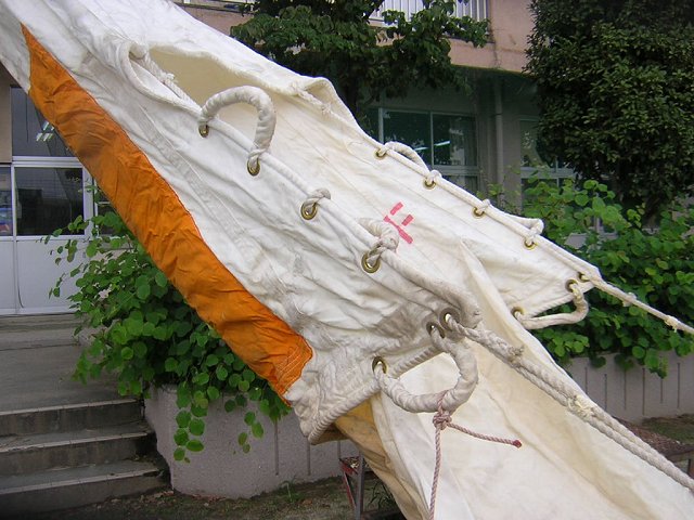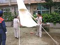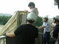 固定し終わったら二人でシューターの出口を持ち、脱出者が地面に激突しないようにします。準備完了! |